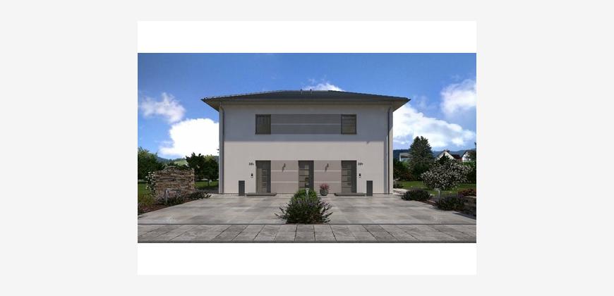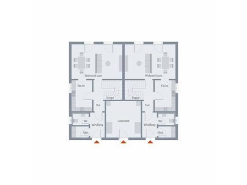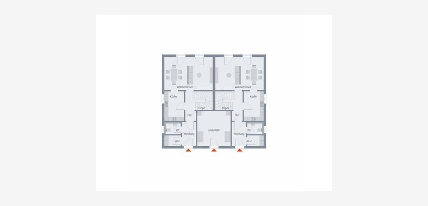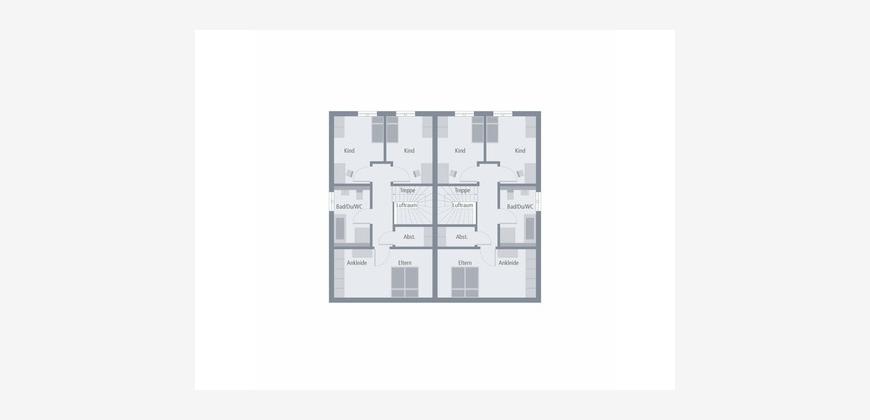 Perfekt in jedes ländliche und urbane Wohnumfeld fügt sich unser Zinshaus 4 ein. Das klassische Stadthaus mit zeitlos-elegantem Walmdach verfügt über zwei identische Wohnungen, die sich jeweils über zwei Etagen erstrecken. Besonders praktisch: der von außen zugängliche, gemeinsam genutzte Hauswirtschaftsraum. Über zwei separate Eingänge und einen unmittelbar dahinter gelegenen Windfang geht es in die mehr als 110 m² große Wohnung. Im vorderen Bereich befinden sich ein Gäste-WC sowie ein Abstellraum. Der sich anschließende Flur führt direkt in das große und lichtdurchflutete Wohn-Ess-Zimmer, an den sich eine geräumige Küche anschließt. Eine Wendeltreppe verbindet die beiden Stockwerke miteinander und führt in den Erholungsbereich für die ganze Familie. Hier ist Platz für zwei Kinderzimmer sowie ein geräumiges Elternschlafzimmer mit einem separaten Ankleidebereich. Ein Badezimmer mit Wanne, Dusche und WC rundet das Raumangebot im Obergeschoss ab. Zinshaus 4: Zeitlos-elegante Architektur und maximaler Wohnkomfort.