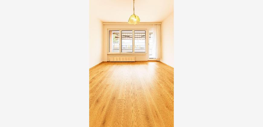 Die ca. 70 m² große Wohnung teilt sich auf in ein Schlafzimmer, ein Wohnzimmer Vollbad mit Fenster und eine Küche.