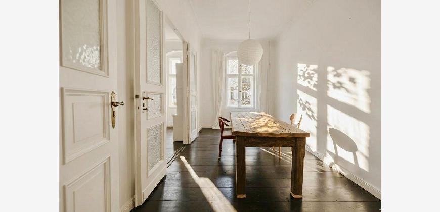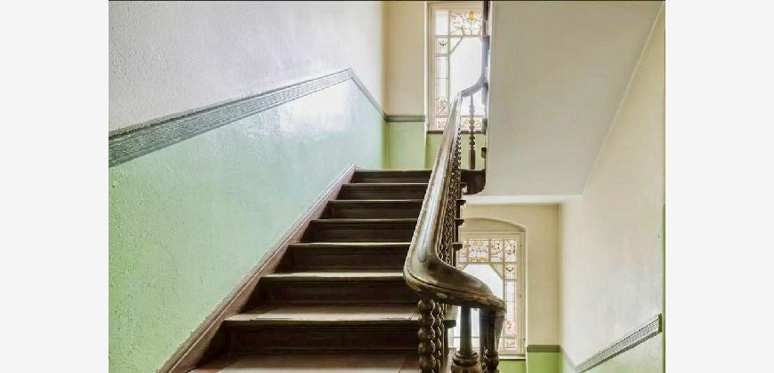 Die Wohnung befindet sich im 2.OG eines typischen Gründerzeitbaus, das im Jahr 1910 errichtet wurde und befindet sich in einem sehr guten Zustand. Der fünfgeschossige, unterkellerte Bau besteht ausschliesslich aus einem sonnigen Vorderhaus. Alle Wohnungen werden über das historische Entree und Treppenhaus mit Bleiglasfenstern erschlossen. Zum Grundstück gehört ein heller, grüner Innenhof.