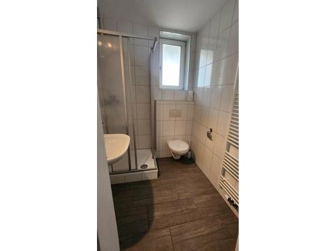 - Badezimmer mit einer Dusche, Fenster, WC und Handtuchheizkörper