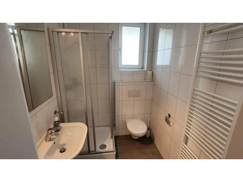 Alle Räume sind mit einem einheitlichen, pflegeleichten Fliesenboden ausgestattet. Die Einbauküche verfügt über alle notwendigen Anschlüsse und bietet zusätzlich einen praktischen Waschmaschinenanschluss. Das Badezimmer ist mit einer Dusche, einem WC sowie modernen, hellen Fliesen sowie einem Fenster ausgestattet. Der offene und lichtdurchflutete Wohn- und Schlafbereich schafft eine angenehme, einladende Atmosphäre.