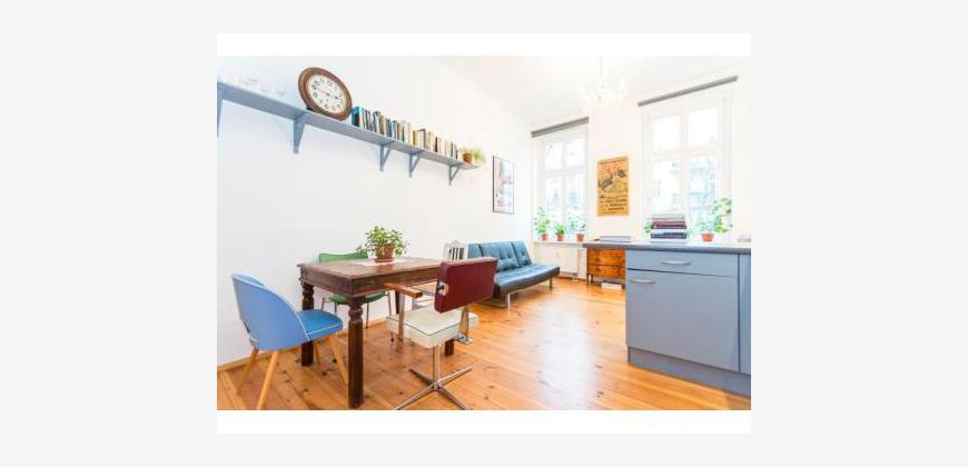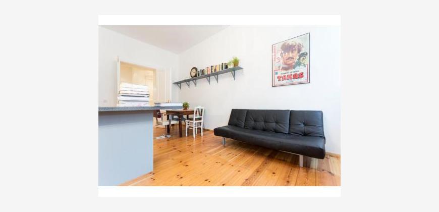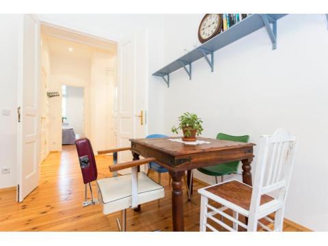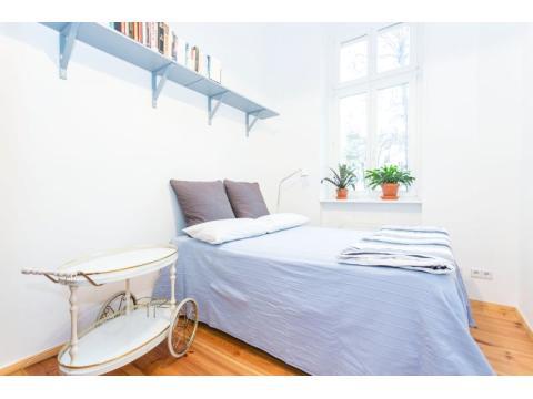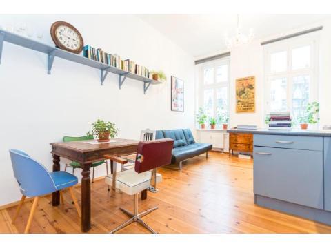 This is a real jewel in the heart of Berlin - a beautiful 40sqm one bedroom apartment in an old Berlin building in the belle etage first floor with its amazing high ceilings. The apartment looks out onto Sredski street which is next door to the famous Kulturbrauerei. At the end of the street are the very popular and well known Anna Blume and Sowohl als auch cafes.