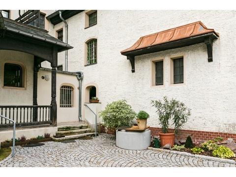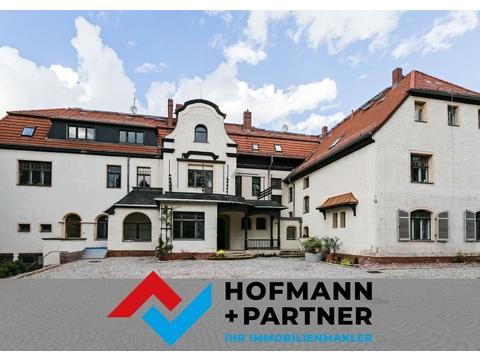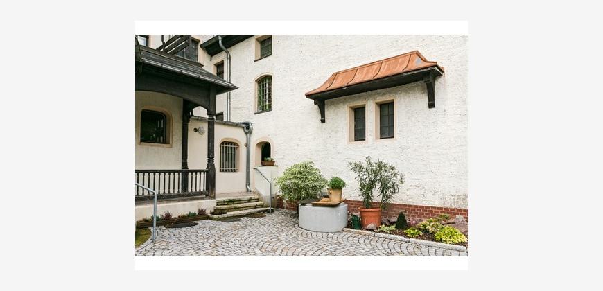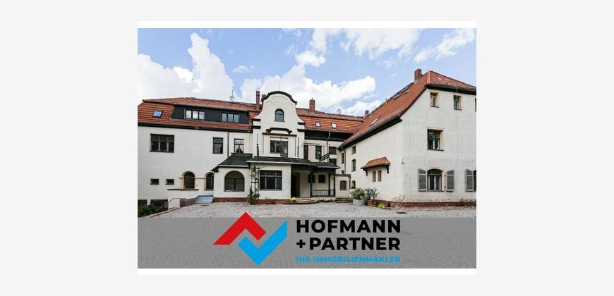 Die Zweiraumwohnung befindet sich im Erdgeschoss einer denkmalgeschützten Villa auf dem 8.320 m² großen, vollständig umfriedeten Anwesen.