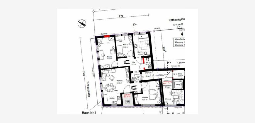Diese wunderschöne 4-Zimmer-Neubauwohnung wird Ihnen sicher sofort gefallen. Sie haben einen großen, hellen, offenen Wohn- und Essbereich mit Einbauküche und Zugang zu einem schönen Balkon.