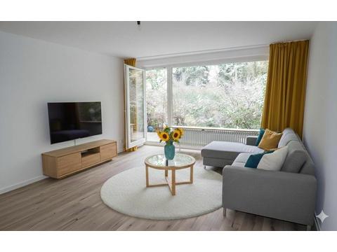 Eine sehr ruhig und idyllisch gelegene 3 Zimmer Wohnung. Der perfekter Mix aus Ruhe, Natur und trotzdem die Nähe und Vorzüge der Großstadt. Die ungewöhnlich großzügigen Nutzflächen im Keller und Hobbyraum eignen sich ideal für Sammler oder Bastler. Eine eigene Waschküche sorgt dafür, dass die Wohnung selbst auch immer geräumig, wohnlich und gemütlich bleibt. Die großzügige Loggia mit Blick ins Grüne lädt zum Verweilen an sommerlichen Abenden ein. Man kann die Natur förmlich spüren.