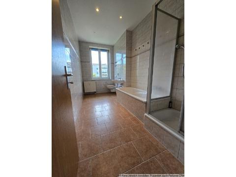 Das Tageslichtbad ist großzügig gestaltet und modern ausgestattet: Eine Badewanne, eine separate Dusche, Doppelwaschbecken sowie ein Waschmaschinenanschluss erfüllen alle Ansprüche an Komfort und Funktionalität.