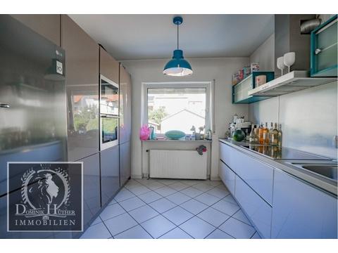 Küche, Essbereich und Wohnzimmer bilden eine harmonische Einheit und schaffen ein modernes, kommunikatives Wohnambiente.