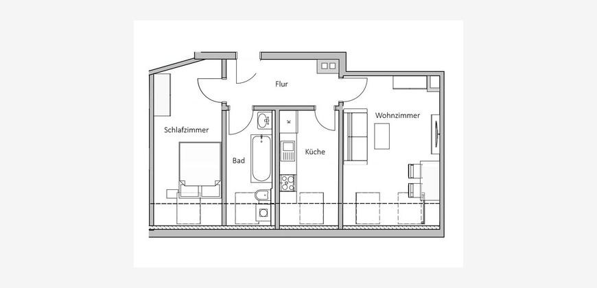 Diese charmante Dachgeschosswohnung steht ab dem 15.02.2026 zur Vermietung bereit und überzeugt durch ihren besonderen Wohncharakter. Als frisch sanierter Erstbezug bietet sie auf rund 54,50 m² Wohnfläche ein modernes und zugleich behagliches Zuhause.