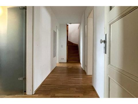 - Holzdielen in den Wohnräumen, Bad und Küche gefliest