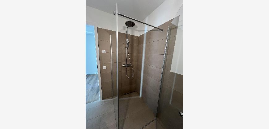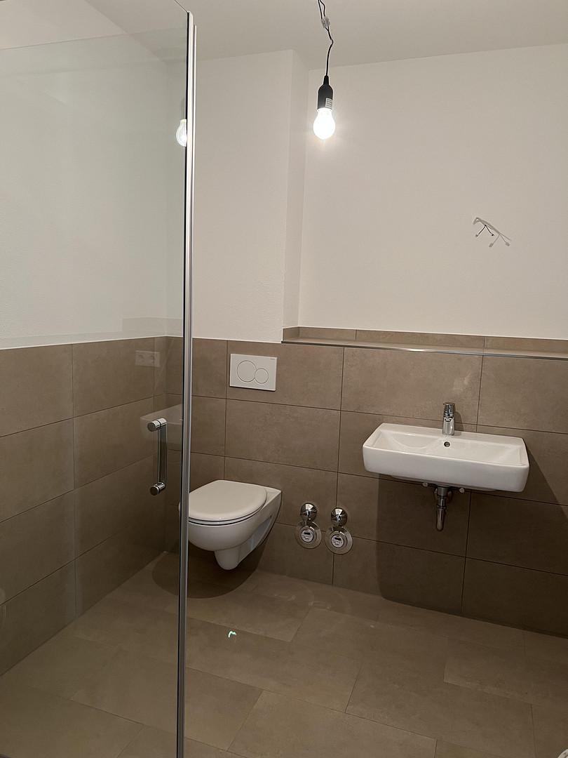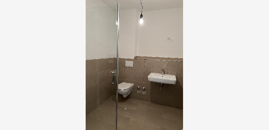 Dusche, Fußbodenheizung, Einbauküche, Aufzug, Stellplatz, bodentiefe Fenster, 3 Balkone, Abstellraum, Neubau, Erstbezug, Gäste WC.