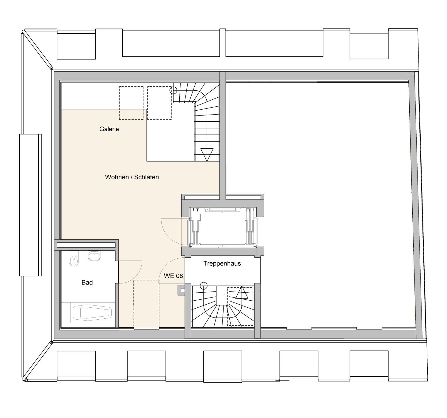 Die interessante und ansprechende Galeriewohnung befindet sich im 4.Obergeschoß/Dachgeschoß des Objektes, ist barrierefrei erreichbar und punktet mit einer modernen und stilvollen Ausstattung.