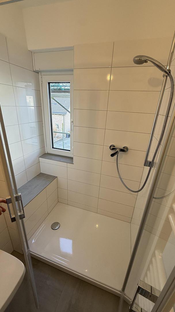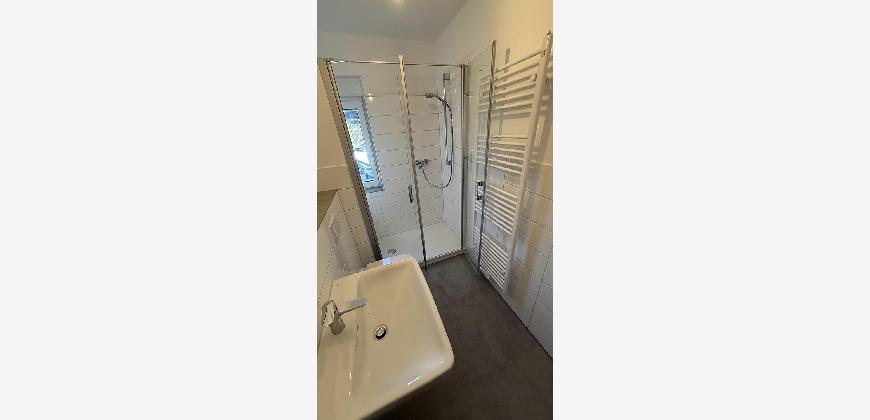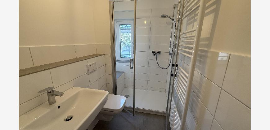 – Modernisiertes Badezimmer mit ebenerdiger Dusche, Hänge-WC und Handtuchheizkörper