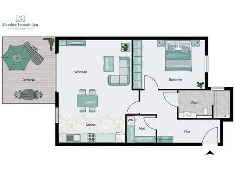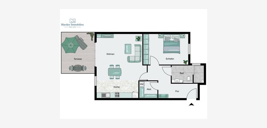 Die modern gestaltete Erdgeschosswohnung befindet sich in einem Mehrfamilienhaus mit insgesamt 6 Wohneinheiten. Aufgeteilt in Wohnzimmer mit offener Küche, Terrasse, Diele, Bad mit Dusche und WC, Schlafzimmer und Abstellraum. Der Kfz-Stellplatz wird mit monatlich 20,00 € berechnet.