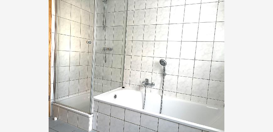 Tageslichtbad mit begehbarer Dusche und Badewanne.