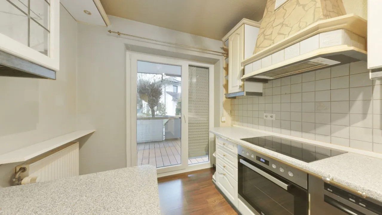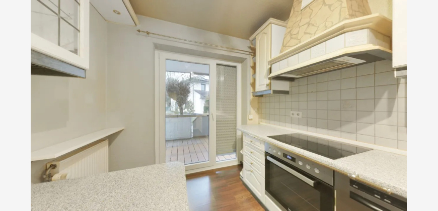 Die gut geschnittene 88 m² große Wohnung befindet sich im Erdgeschoss eines Mehrfamilienhauses mit 8 Mietparteien und ist aufgeteilt in 3 Zimmer, Küche, Diele, Bad und Gäste-WC sowie 1 Kellerraum. Die Wohnung verfügt über einen großen Balkon. Ein Stellplatz ist der Wohnung ebenfalls zugeordnet.