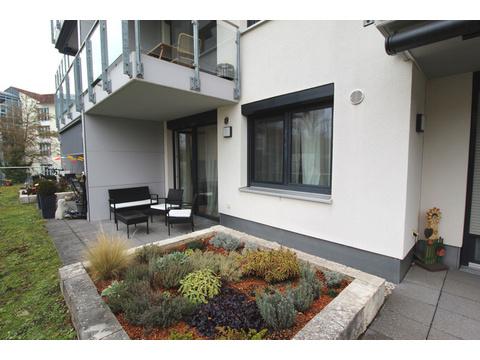 Zentral zum Hofgarten sind hier vor wenigen Jahren Wohnungen mit exklusiver Komfortausstattung entstanden. Hier finden Sie alles was das Wohnen angenehm macht. Vom Aufzug, der bis in die Tiefgarage fährt, über vollständig barrierefreie Zugänge in alle Räume und zur Terrasse, bis zur bodengleichen Dusche im Badezimmer.