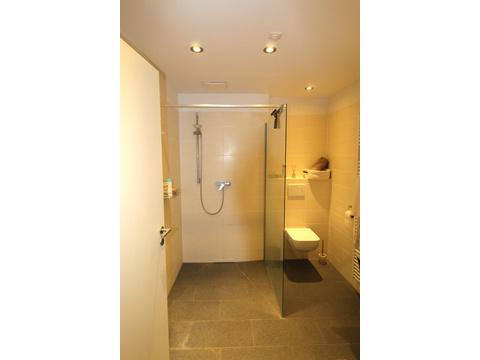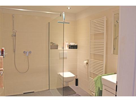-Bad mit bodengleicher Dusche und Handtuchheizkörper
