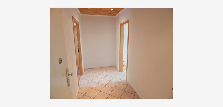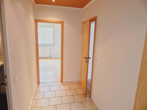 Vom Wohnzimmer aus gelangen Sie in einen weiteren Flur, der die privaten Räumlichkeiten erschließt. Hier befinden sich auf der linken Seite das Schlafzimmer, mittig das Badezimmer sowie auf der rechten Seite ein weiteres Zimmer, das sich ideal als Kinder-, Gäste- oder Arbeitszimmer nutzen lässt.