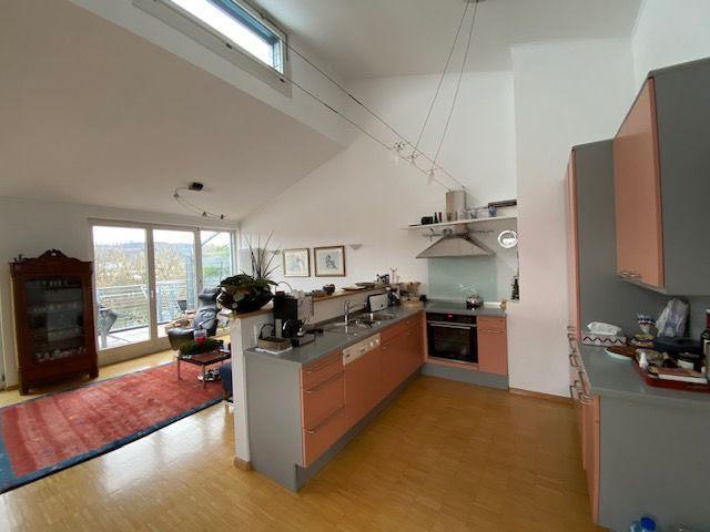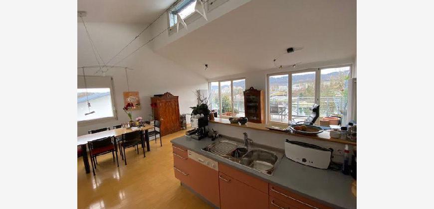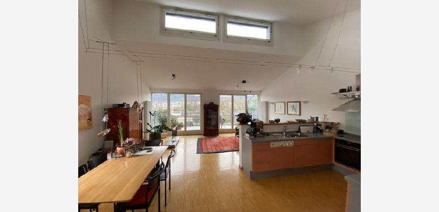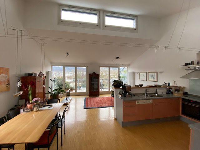 So geniessen Sie in einer Traumlage und Blick in die Schweiz die vier Jahreszeiten und insbesondere den Frühling und Sommer am Besten. Diese Wohnung besticht durch ihre Grösse und einmalige Lage mit mediterranem Flair und dem besonderen Schnitt mit teilweise Deckenhöhen von bis zu 5 Meter. Die Wohnung ist überall Lichtdurchflutet und sehr hell. Es sind 2 Balkone (einer davon mit elektrischer Markise) vorhanden, eine offene grosse Küche, eine Speisekammer, ein Flur, ein Treppenhaus DREI Bäder mit Dusche & Badewanne, drei Schlafzimmer, eine Galerie und das geräumige sehr frei und offen wirkende Wohnzimmer. Die beiden Südbalkone sine einmal ca. 20 m2 und einmal 15 m2 gross.