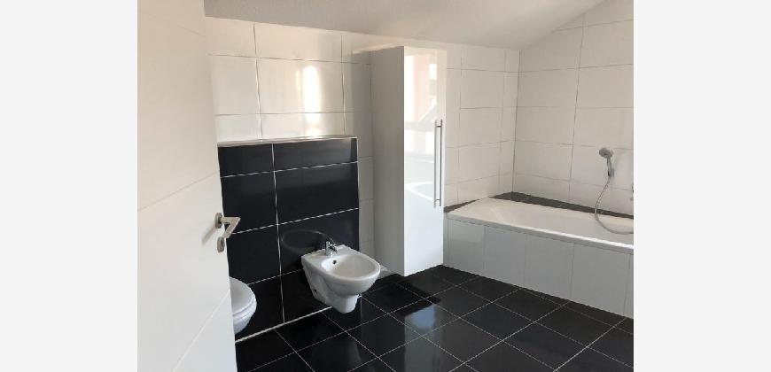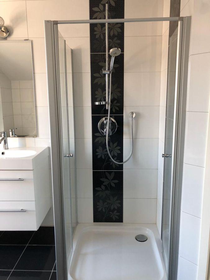 - modernes, helles Badezimmer mit Dusche und Badewanne