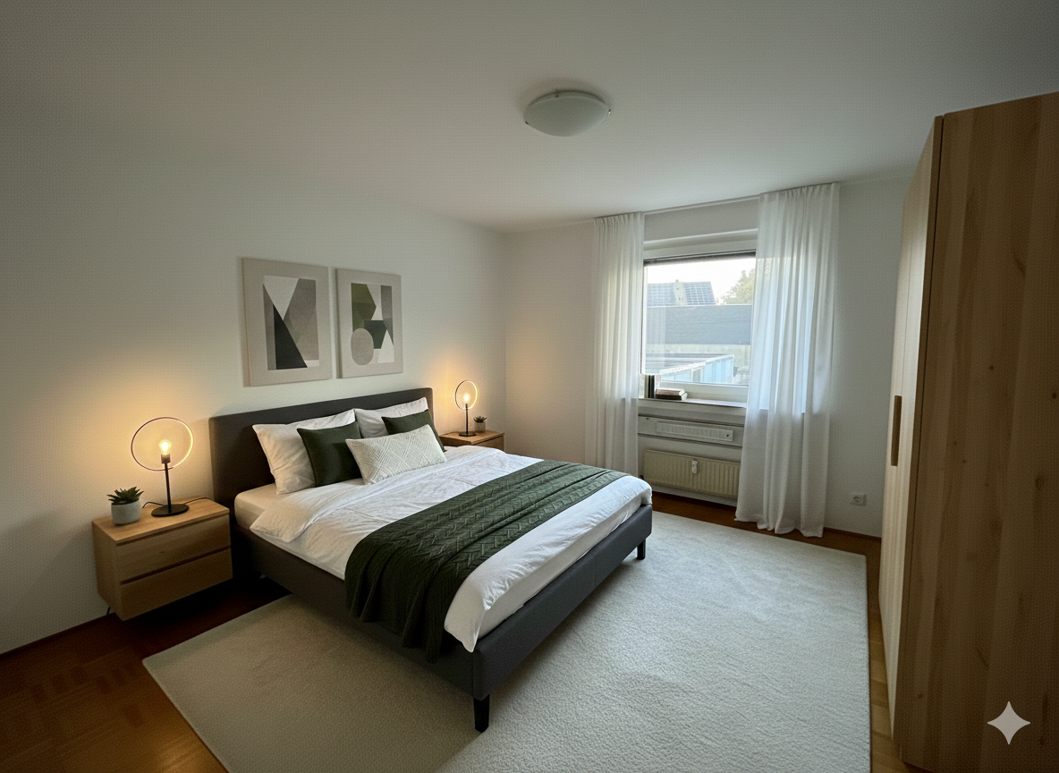 Sie erreichen das Wohnhaus Bochumer Str. 72 a über eine private Stichstraße zwischen den Häusern Bochumer Str. 72 und 74. Die Hundehaltung ist in der Wohnung nicht gestattet. Bei Interesse wird um eine aussagekräftige E-Mail-Anfrage mit kurzer Vorstellung gebeten. Die dargestellten Einrichtungsbeispiele wurden auf der Grundlage von Originalbildern der offerierten Wohnung KI-generiert. Makleranfragen unerwünscht! Nach § 7 UWG sind unaufgeforderte Kontaktaufnahmen durch Makler ohne ausdrückliche Einwilligung des Empfängers verboten!