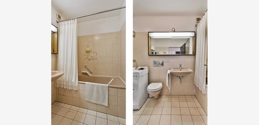 Die Wohnung ist seit ca. 30 Jahren an eine Person vermietet, die monatliche Kaltmiete inklusive Tiefgaragenstellplatz beträgt 630,- EUR.