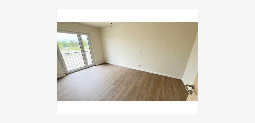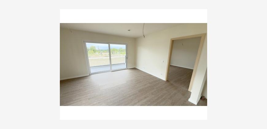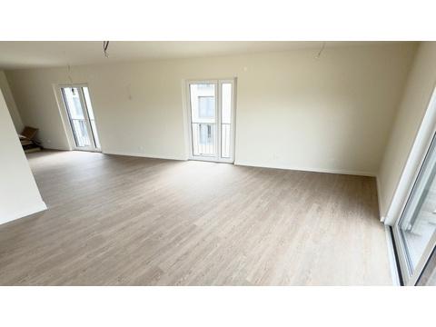 Die Bodenbeläge in der Wohnung bestehen aus einem Vinylboden und Fliesen im Bad. Überall gibt es eine Fußbodenheizung.