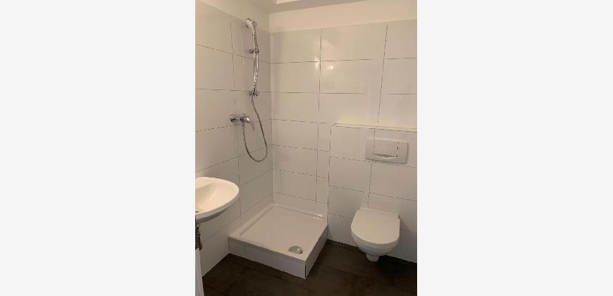 Das Apartment besteht aus einem hellen Wohn-/Schlafzimmer, einem kleinen Flur, einer funktionalen Singleküche mit Spüle sowie Kühlschrank mit Gefrierfach und einem modernisierten Duschbad. Die Wohnung überzeugt durch ihre durchdachte Raumaufteilung und eine schöne Aussicht ins Grüne bzw. auf die Umgebung.