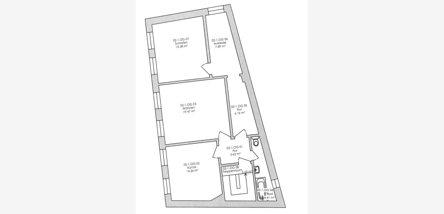 Die Wohnung verfügt über eine Fläche von ca. 70 m² und ist aufgeteilt in eine großzügige Küche, Wohnzimmer, Schlafzimmer und einem kleinen Durchgangszimmer, das als Arbeitszimmer genutzt werden kann. Der Holzboden sorgt für eine wohnliche Atmosphäre. Das Tageslichbad verfügt über eine Badewanne. Die Wohnung wird über eine Gas-Etagenheizung beheizt