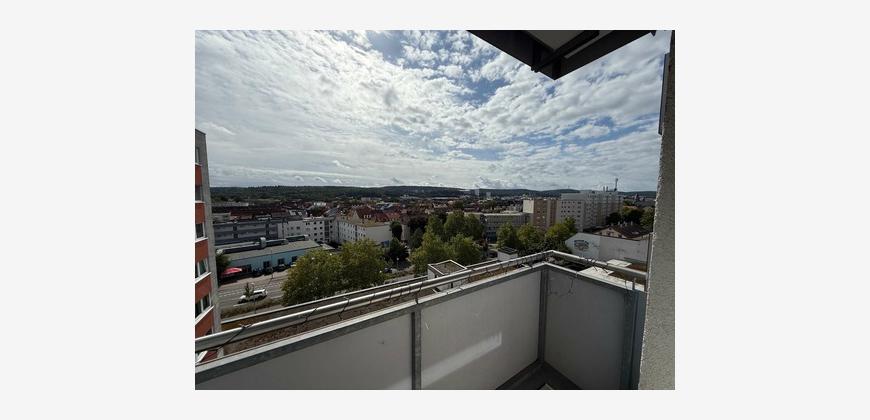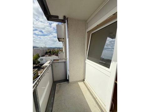 Vom kleinen Balkon und den großen Fenstern auf der Südseite hat man eine tolle Aussicht über die Stadt und den angrenzenden Pfälzer Wald. Durch die Lage ist die Wohnung sehr ruhig und akustisch von der Hauptverkehrsstraße abgeschirmt, was aber den Blick in die Ferne nicht stört.