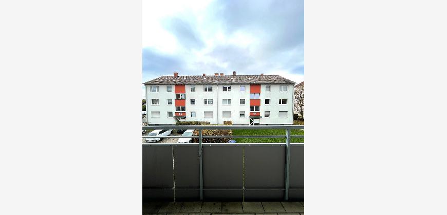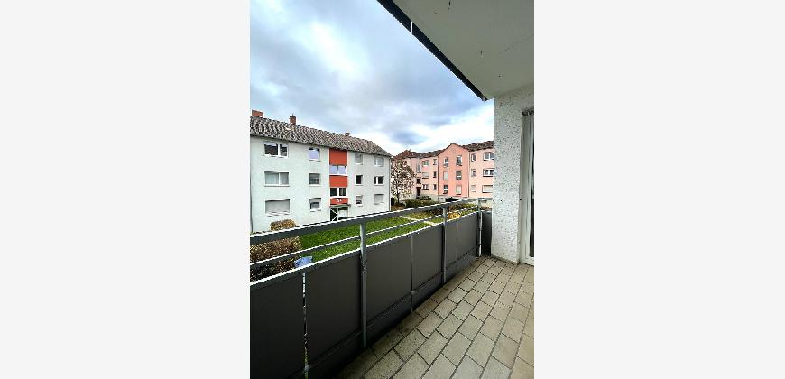 Der schöne Balkon mit Blick ins ruhige Wohnumfeld lädt zum Entspannen ein und erweitert den Wohnraum an warmen Tagen.