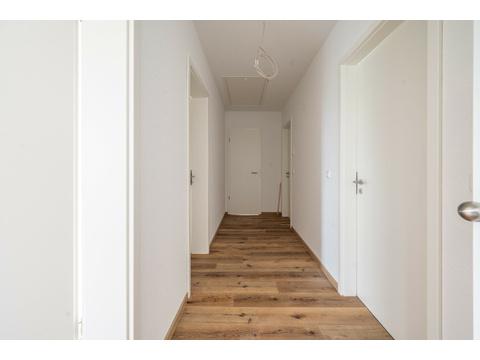 Schon beim Betreten der Wohnung empfängt Sie ein großzügiger Flur, der eine angenehme Raumaufteilung schafft. Der offene Wohn- und Essbereich ist das Herzstück dieser Wohnung. Durch die großen Fenster strömt viel Tageslicht herein, was den Raum hell und einladend macht. Hier können Sie entspannt den Tag ausklingen lassen und den Blick in die Ferne genießen.
