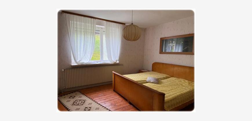 Das Wohnhaus wurde im Jahr 1932 in solider Massivbauweise errichtet und verfügt über eine Vollunterkellerung sowie ein zusätzliches Nebengebäude. Es steht auf einem ca. 1.583 m² großen Grundstück in leichter Hanglage, wodurch ein großzügiger Außenbereich mit vielfältigen Gestaltungsmöglichkeiten entsteht. Im Jahr 1956 wurde das Gebäude um einen Windfang erweitert, der heute als praktischer und wettergeschützter Haupteingang dient. Rund zehn Jahre später kamen eine Garage sowie ein Carport hinzu, die komfortable Stellflächen für Fahrzeuge bieten. In den 1980er‑Jahren entstand zusätzlich eine rund 38 m² große Terrasse, die sowohl vom Wohnzimmer als auch vom Garten aus zugänglich ist und einen attraktiven Aufenthaltsbereich mit schönem Blick in den Garten bietet. Der Zugang zum Haus erfolgt über den Windfang, der direkt in den zentralen Flurbereich führt und einen einladenden Einstieg in den Wohnbereich schafft. Das Wohnhaus verfügt über eine Gesamtwohnfläche von ca. 200 m², verteilt auf zwei Vollgeschosse. Die Raumaufteilung umfasst neun Zimmer, zwei Bäder, eine Küche sowie jeweils einen Flur pro Etage. Die gut strukturierte Grundrissgestaltung sowie die hellen, großzügigen Räume eröffnen vielfältige Nutzungsmöglichkeiten – sei es als geräumiges Einfamilienhaus, als Wohnlösung für mehrere Generationen oder für Wohnen und Arbeiten unter einem Dach.