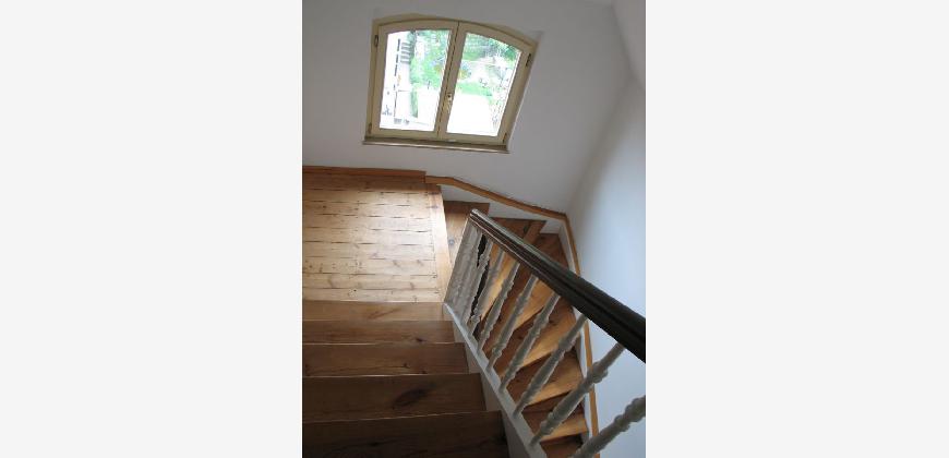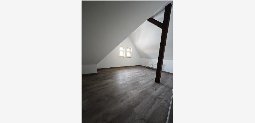 Die 3-Raum Wohnung befindet sich im 4. OG eines sehr schönes denkmalgeschützten Altbaugebäudes in Kahla/Thür. und erstreckt sich über 2 Etagen. Das Haus wurde 1928 gebaut und 2003 kernsaniert. Die Wohnung wurde im Dezember 2025 komplett hochwertig renoviert, einschließlich Verlegung eines Designfußboden. Das Bad hat Tageslicht. Die Wohnung ist zwar nicht sehr groß, was aber aufgrund der guten Raumaufteilung nicht besonders ins Gewicht fällt.