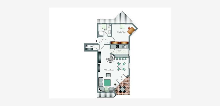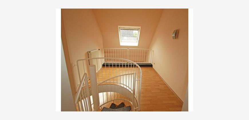 Ein gepflegtes Wohnhaus mit insgesamt nur 6 Wohnungen und ruhigen, überwiegend langjährigen Mitbewohnern. Die Maisonettewohnung verläuft über das II. OG und Dachgeschoss. Aufgeteilt in Wohn-/Esszimmer mit offener Küche, großzügiger Südbalkon, Flur, Arbeits-/Kinderzimmer, Duschbad mit WC, eine offene Wendeltreppe führt auf die Galerie mit Platz für einen Arbeitsbereich, Schlafzimmer mit begehbarem Schrank, Bad mit Wanne und WC.