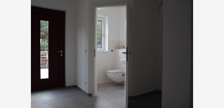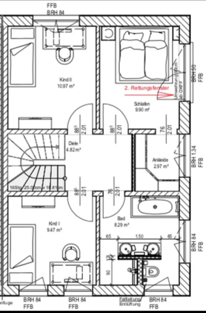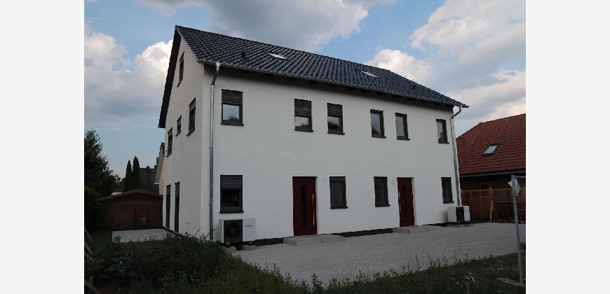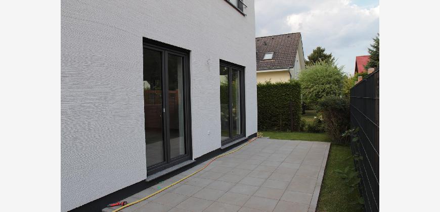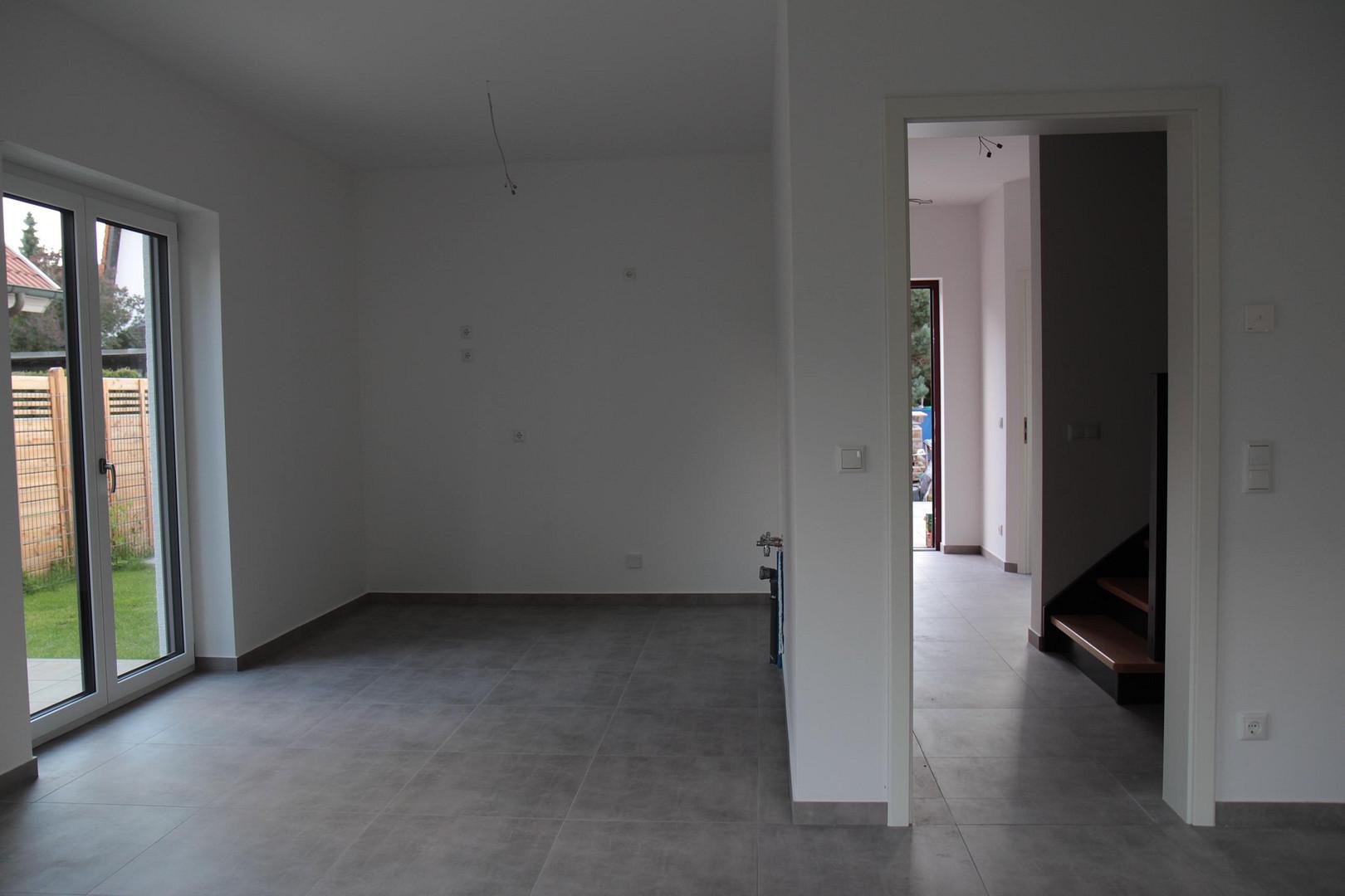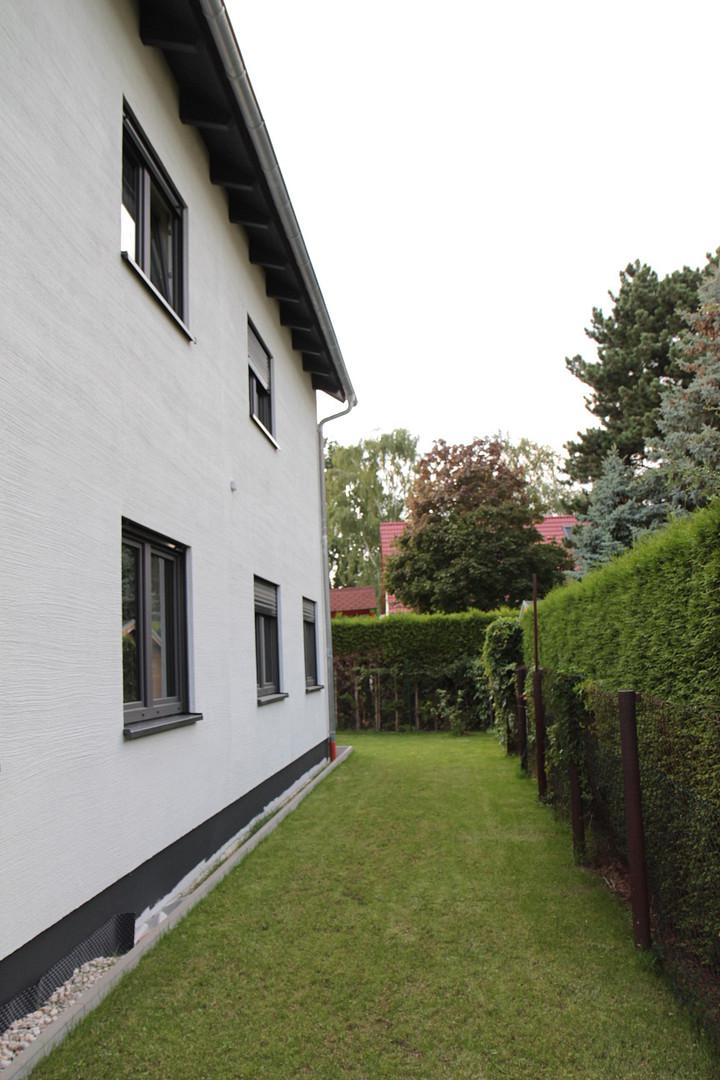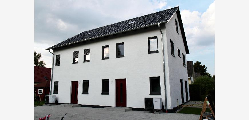 Die Doppelhaushälften liegen in ruhiger Lage auf dem hinteren Teil des Grundstücks. Grundschule, Kindergarten und Einkaufsmöglichkeiten sind bequem zu Fuß erreichbar. Für Freizeit und Erholung befinden sich Parks und Seen nur ca. 500 m entfernt – ideal für Familien und Naturliebhaber.