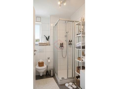 - Tageslichtbad mit Dusche, Toilette, Waschbecken