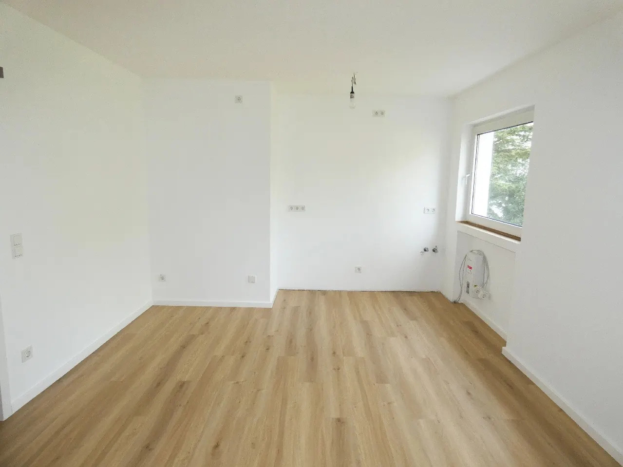 Der helle und freundliche Wohnbereich bildet das Herzstück der Wohnung und lädt zum Entspannen und Verweilen ein. In allen Räumen wurde ein neuer, hochwertiger Vinylboden verlegt, der für ein modernes und zugleich wohnliches Ambiente sorgt.