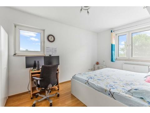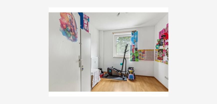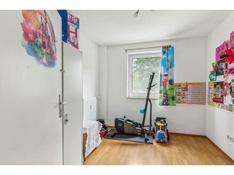 Das Highlight der Wohnung ist die Loggia, die nicht nur zusätzlichen Raum bietet, sondern auch eine idyllische Aussicht in das parkähnliche Umfeld gewährt. Die hohe Baumdichte rund um das Gebäude sorgt dabei für ein angenehmes Klima und natürliche Beschattung.