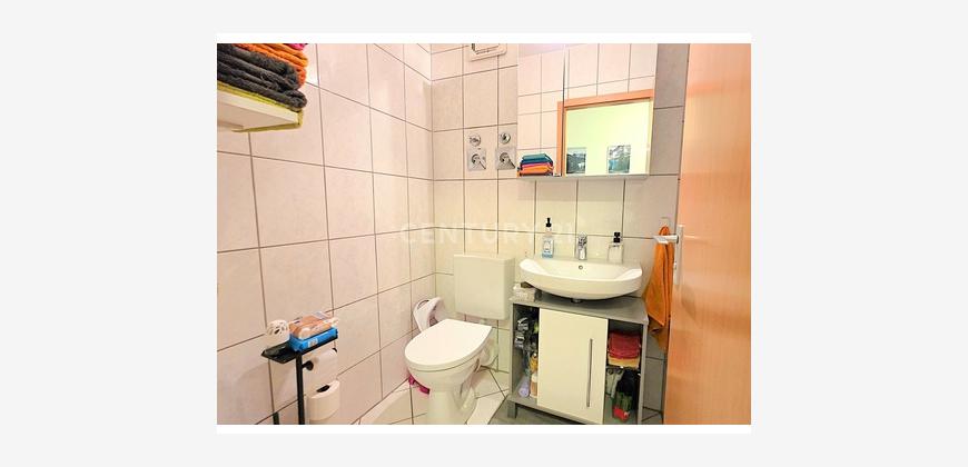 Sie öffnen die Wohnungstür und betreten die Diele, freundlich und übersichtlich gestaltet und der perfekte Ausgangspunkt zu allen Räumen. Gleich links befindet sich das Badezimmer mit Badewanne, in der Sie den Tag entspannt beginnen oder abends zur Ruhe kommen können. Direkt daneben liegt ein praktischer Abstellraum, der für Ordnung sorgt und Platz für alles bietet, was nicht täglich gebraucht wird.