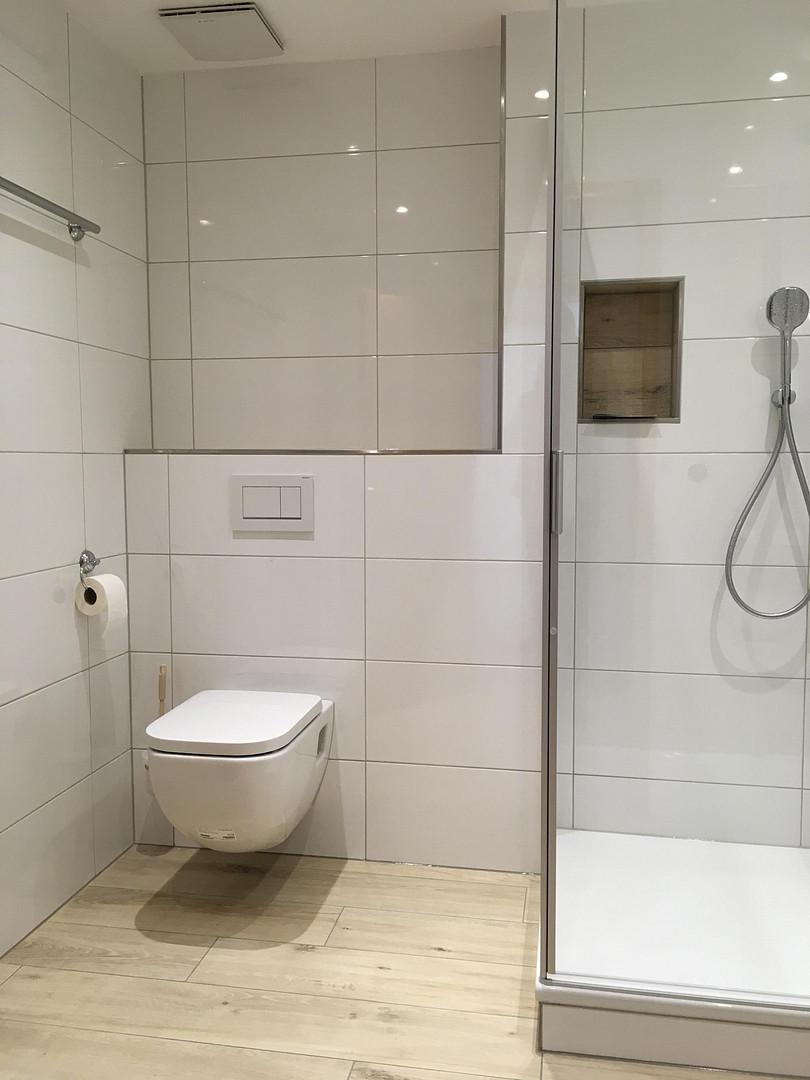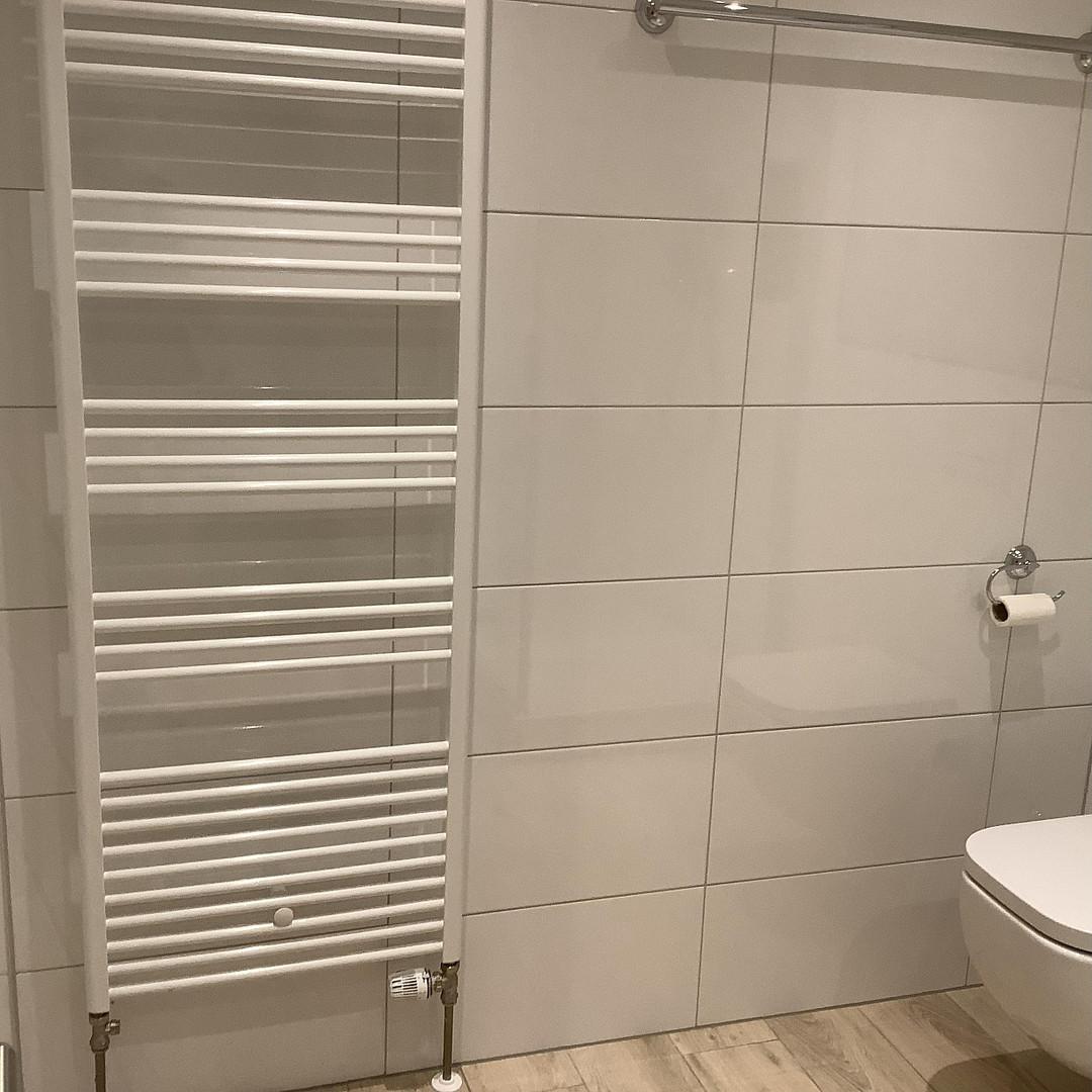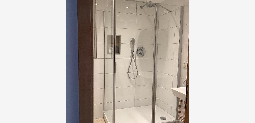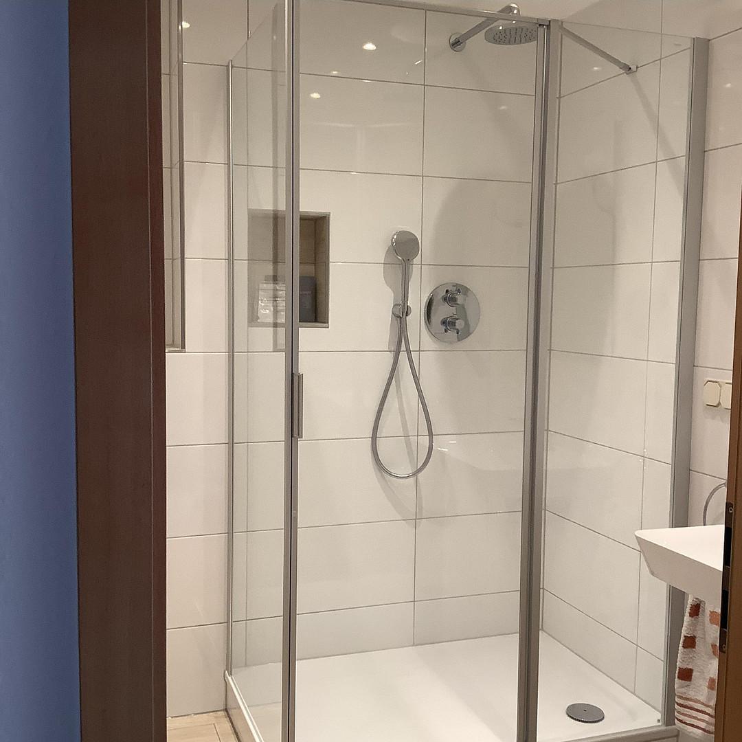 neues, behindertengerechtes Bad mit Glasdusche und Handtuchwärmer