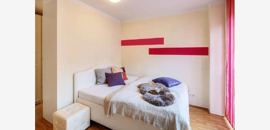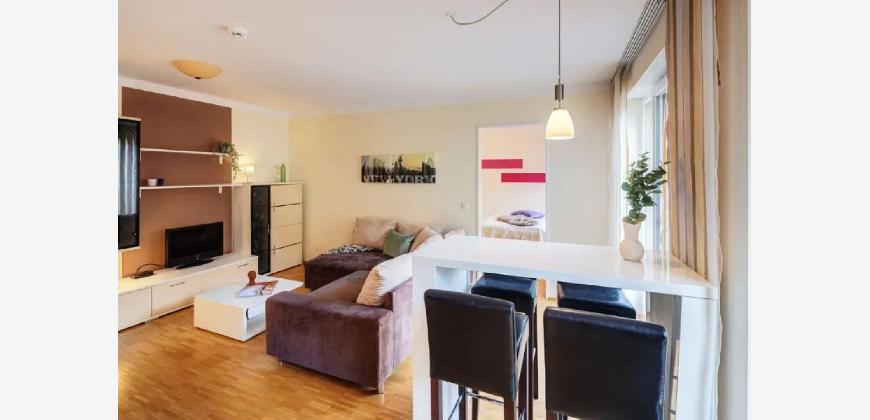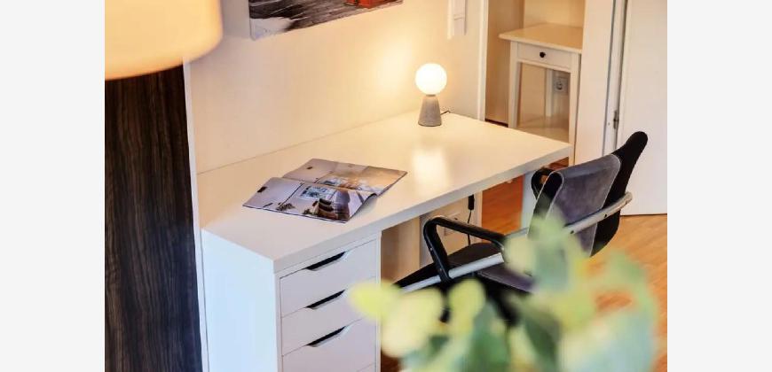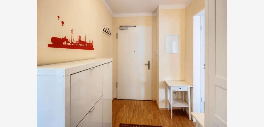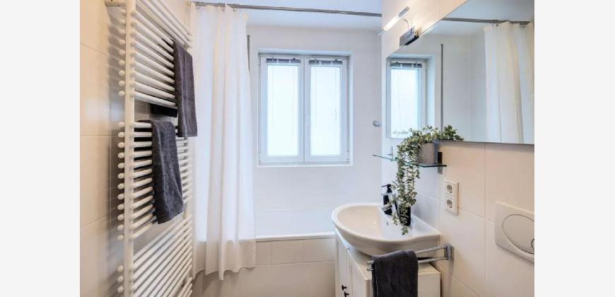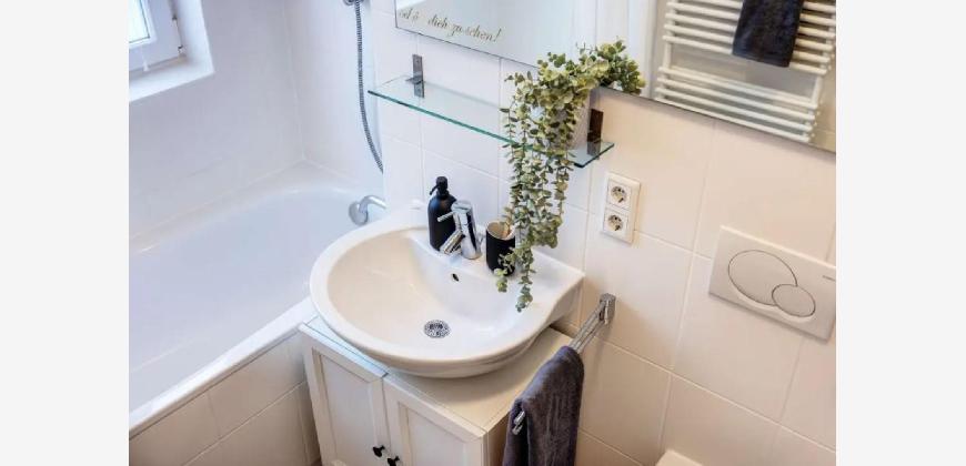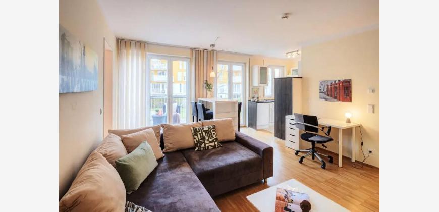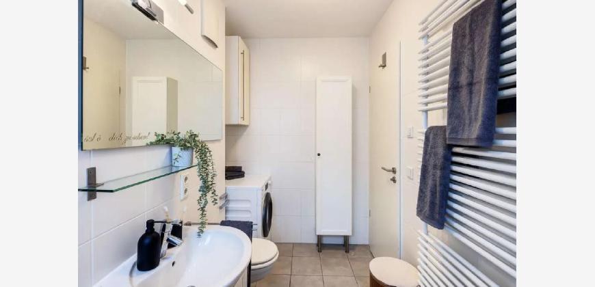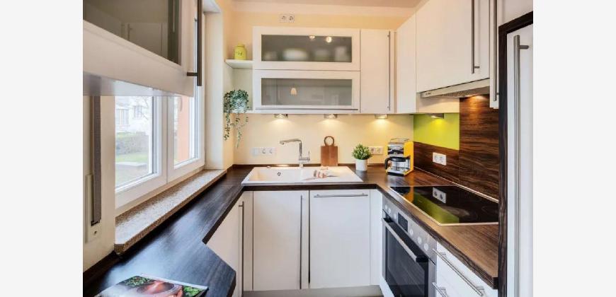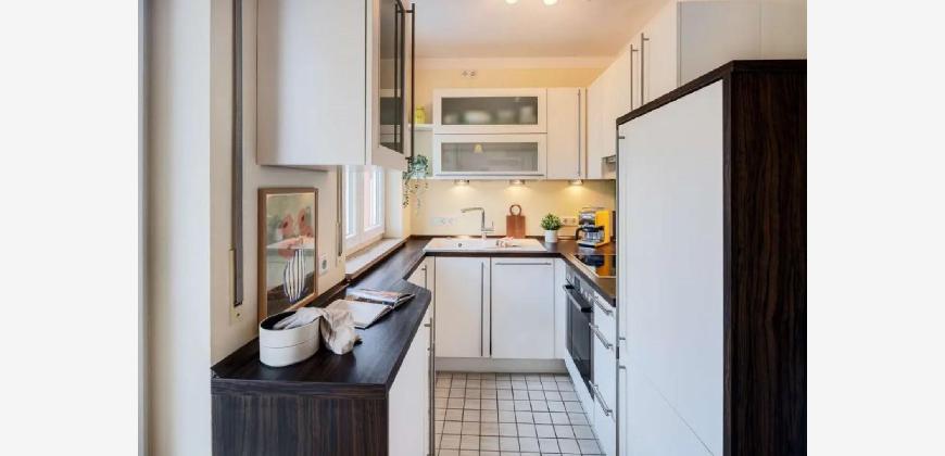Der großzügige Wohnbereich ist hell und freundlich gestaltet und lädt zum Entspannen ein. Das Schlafzimmer bietet ausreichend Platz und sorgt für eine ruhige und komfortable Schlafumgebung. Die Küche ist funktional eingerichtet und bietet genügend Raum für die Zubereitung von Mahlzeiten.