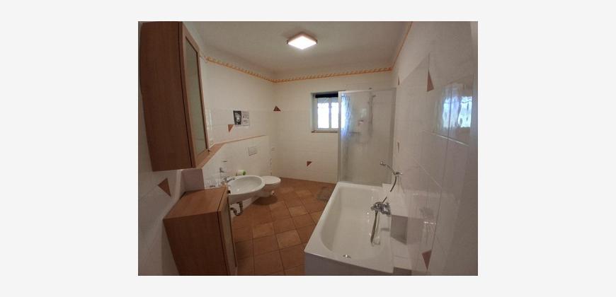 Die Wohnung befindet sich im 1. Obergeschoss und besteht aus einem geräumigen Eingangsbereich von dem Sie in jedes der Zimmer direkt gelangen. Die geräumige Küche bietet viel Platz für Familienfeiern und Feste. Auch das sehr große Wohnzimmer mit seinen großen Fensterflächen bietet einen perfekten Ausblick in die grüne Natur und zum angrenzenden Wildgehege. Das geräumige Badezimmer mit Tageslicht und Blick zum See (Wanne, Dusche, WC, Fenster, Anschlüsse für Waschmaschine und Wäschetrockner). Gegenüber vom Bad befindet sich das Schlafzimmer der Wohnung mit Blick in die grüne Natur. Die Beheizung erfolgt über moderne Heizkörper und im Bad zusätzlich über Fussbodenheizung. Die Wärme und das Warmwasser wird über eine moderne, energieeffiziente Gas-Zentralheizung zur Verfügung gestellt.