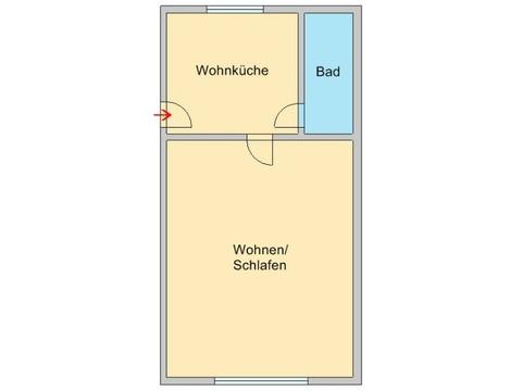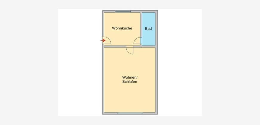 Die hier angebotene Wohnung bietet auf ca. 43m² Wohnfläche eine geräumige Wohnküche mit verfliestem Boden, 1 Wohn- / Schlafzimmer und ein modernisiertes Badezimmer mit Dusche. Der große Wohn-/ Schlafraum ist mit Laminat ausgelegt, die Rolläden sind hier elektrisch bedienbar.