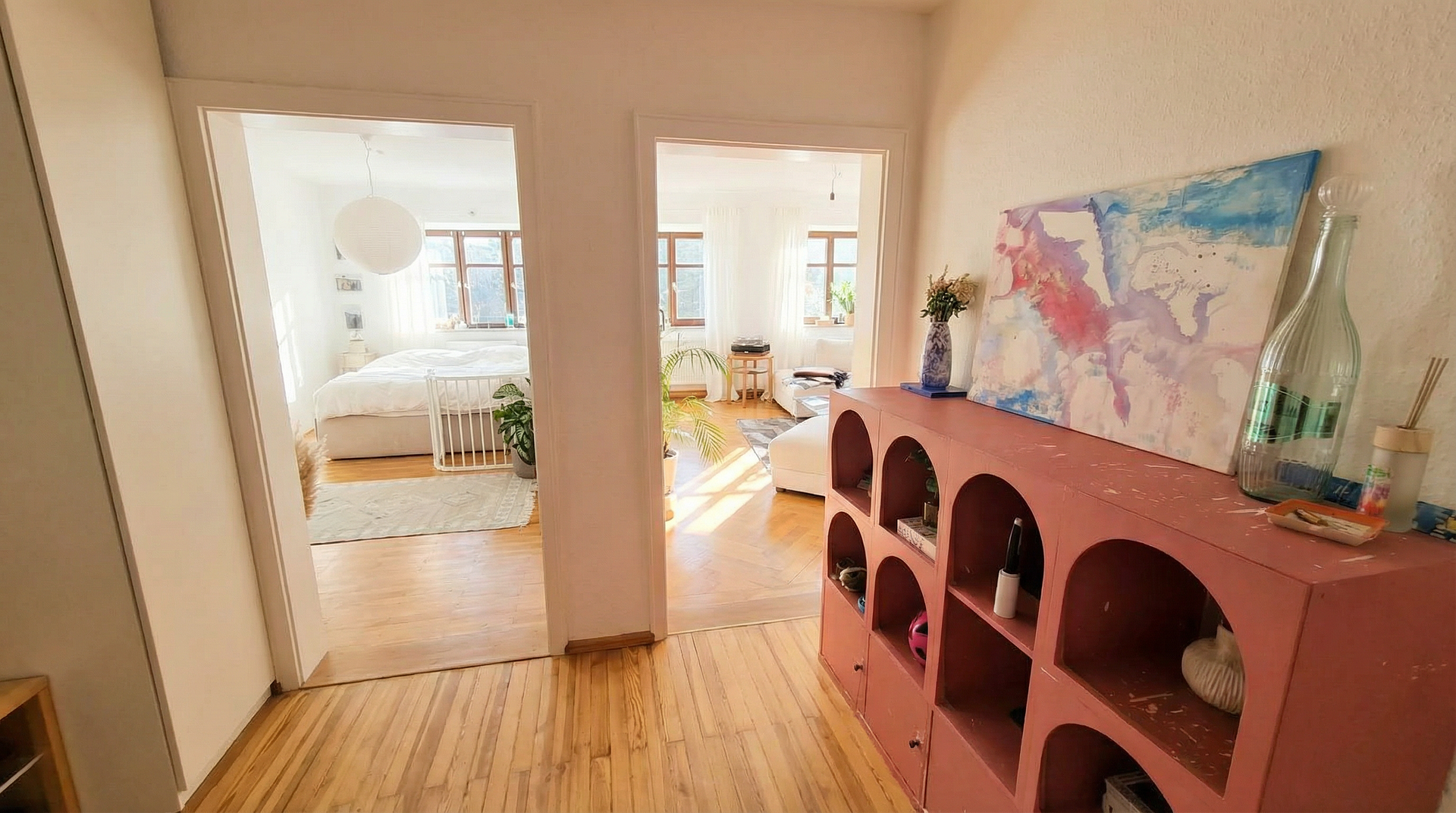 Der Predigerberg liegt in der Augsburger Altstadt und gehört zu den zentralen, gewachsenen Wohnlagen der Stadt. Die Umgebung ist geprägt von historischen Gebäuden, kleinen Läden und Gastronomie. Im Erdgeschoss des Hauses befindet sich ein Café mit Angebot für Frühstück und Brunch – ideal für den Alltag oder informelle Treffen.