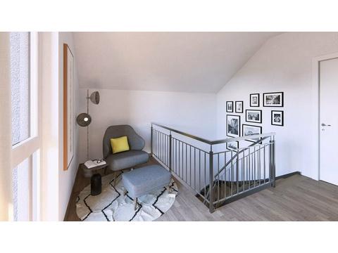 Im Obergeschoss finden Familien alles, was sie zum Wohlfühlen brauchen: Zwei helle, großzügige Kinderzimmer, ein komfortables Elternschlafzimmer und ein modernes Bad, das mit viel Raum zum Entspannen einlädt. Die offene Galerie schafft zusätzlich Leichtigkeit und verbindet die Räume zu einem harmonischen Ganzen.