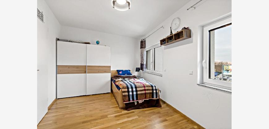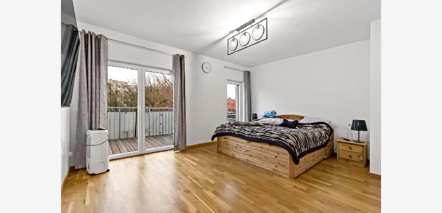 Das große Zimmer eignet sich hervorragend als Elternschlafzimmer. Es bietet viel Platz, eine angenehme Atmosphäre und einen direkten Zugang zum Balkon. Hier entsteht ein Ort für erholsame Nächte und ruhige Momente.