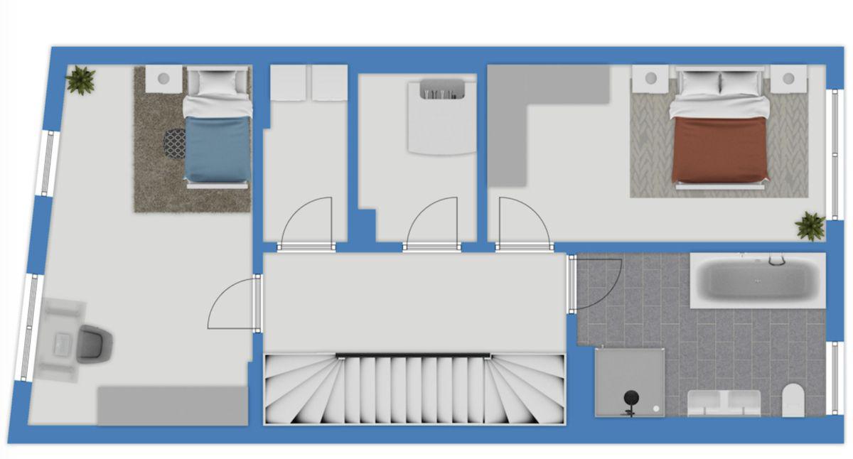 Der zweite Raum lässt sich flexibel nutzen, etwa als Kinderzimmer, Arbeitsbereich oder Gästezimmer.