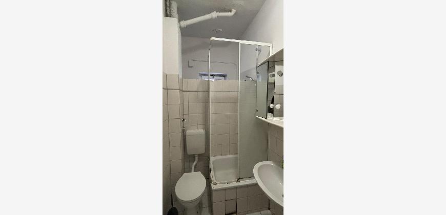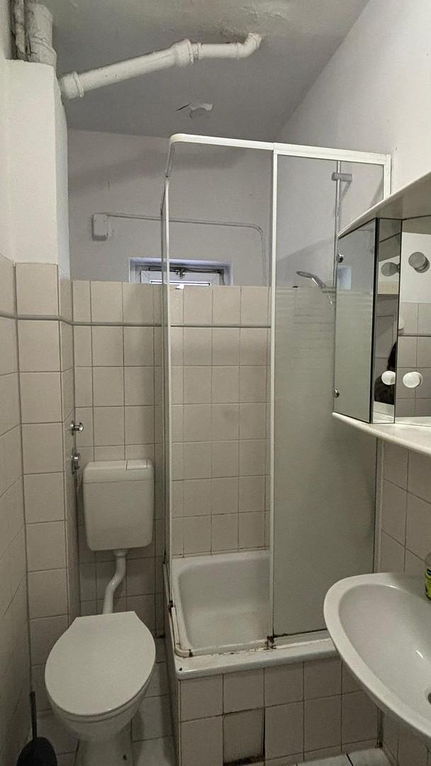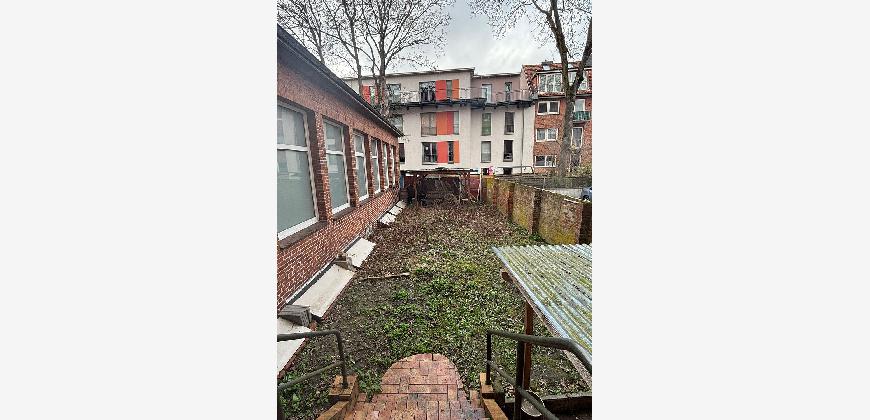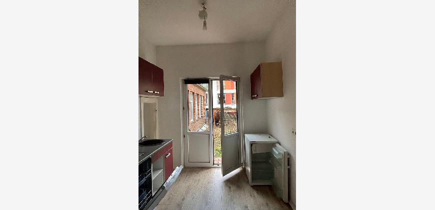 Die 3 Zimmer- Wohung ist trotz der zentralen Lage ruhig, da die Fenster gut isoliert sind. Eine interessante Aufteilung kennzeichnet darüberhinaus die Wohnung. Das Wohn- und Schlafzimmer liegen nach vorn zur Straße. Das kleine Zimmer nach hinten zum Garten. Von der Küche hat man einen Zugang zum Gartenteil!