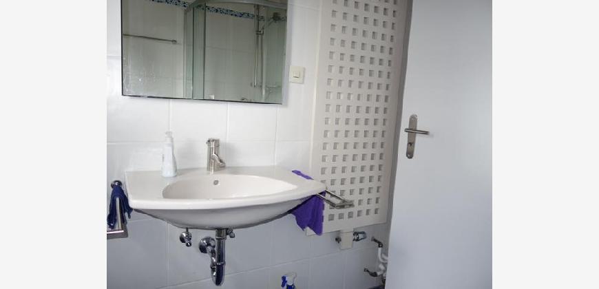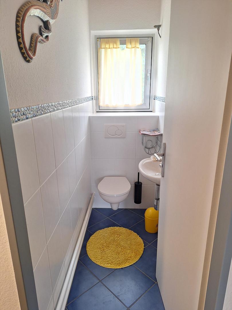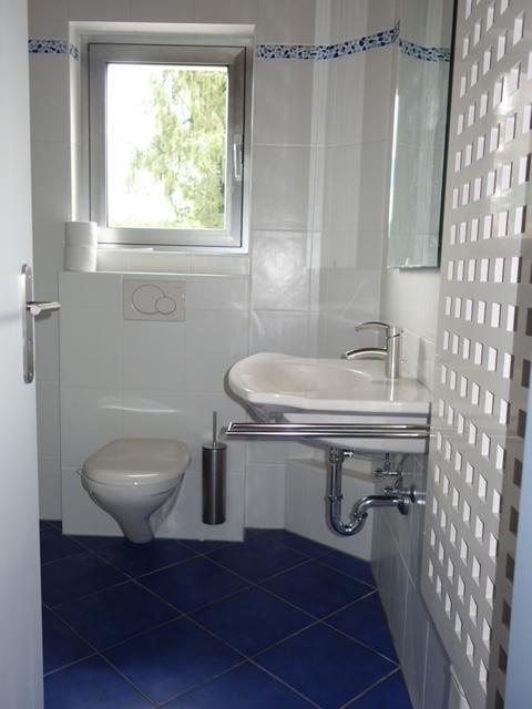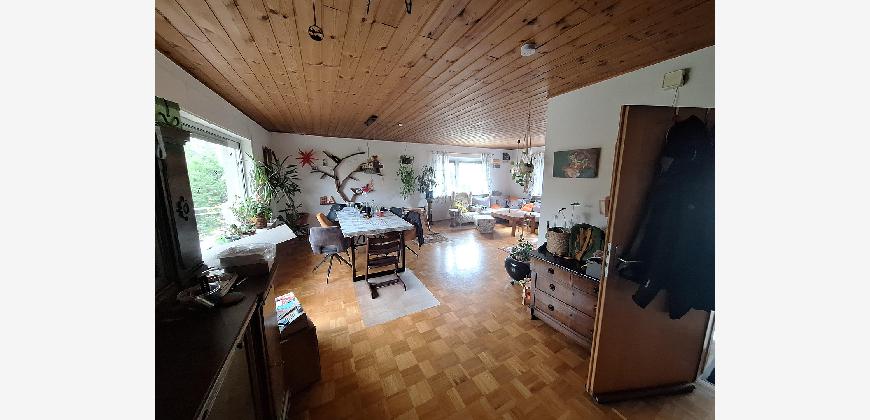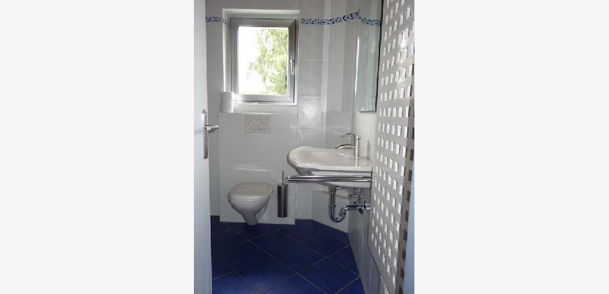 Das Wohn-/Esszimmer verfügt über einen Parkettboden. Die Bäder sind gefliest.
